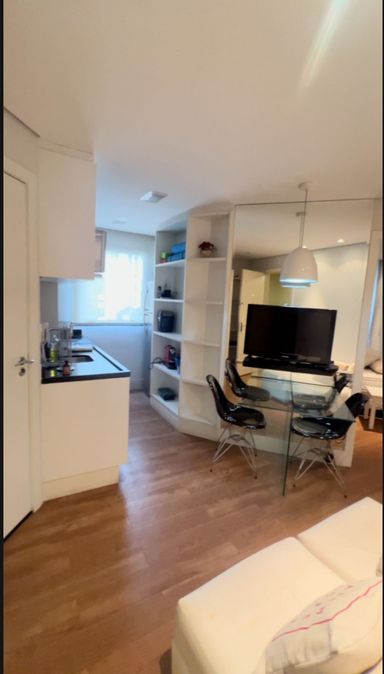 DESCRIÇÃO: 1 dormitório, sala, cozinha, banheiro, lavanderia no prédio e 01 vaga de garagem.